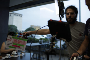 Emanuel Cossu durante la lavorazione del documentario “Con le nostre mani”.