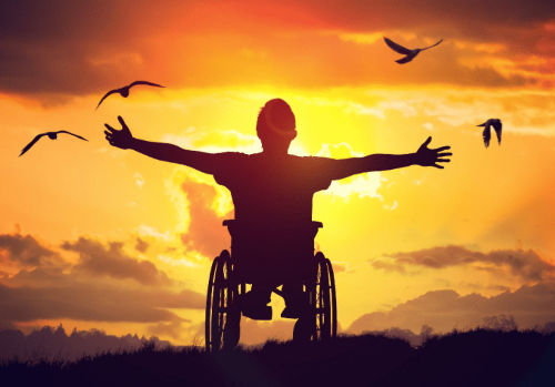Intorno alla sua figura ci sono alcuni uccelli che volano.