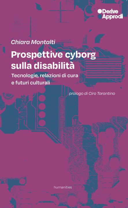La copertina ha uno sfondo magenta scuro con grafiche stilizzate in blu scuro che ricordano circuiti stampati o schemi tecnologici, evocando il tema del cyborg e della tecnologia.
