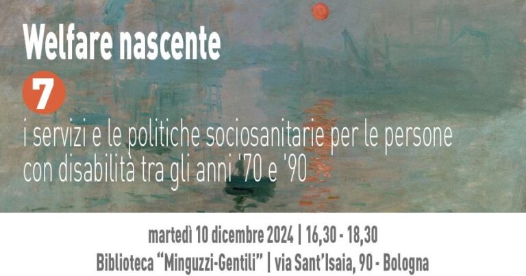 Martedì 10 dicembre 2024 si svolgerà a Bologna il settimo incontro del ciclo denominato “Welfare nascente”, finalizzato a sviluppare il tema “I servizi e le … Leggi tutto Memorie vive. I servizi e le politiche sociosanitarie per le persone con disabilità