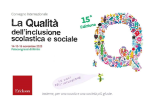 I risultati completi dell’indagine verranno dibattuti al Palacongressi di Rimini, nel corso del 15° Convegno Internazionale Erickson sulla Qualità dell’inclusione scolastica e sociale, in programma dal 14 al 16 novembre, che viene presentato così dai promotori: «L’inclusione non è solo un principio, ma una pratica quotidiana che si misura nelle aule, nei corridoi, nei cortili e nelle relazioni. Ed è oggi, più che mai, una questione aperta. Per parlare delle sfide complesse, ma altrettanto urgenti e necessarie, che l’inclusione pone alla scuola e alla società contemporanee, torna per la sua 15ª edizione il nostro Convegno Internazionale che ha fatto della partecipazione e del confronto il suo segno distintivo. E ancora una volta saranno tre giorni vissuti tra sessioni plenarie, tavole rotonde, workshop e altri incontri di vario tipo, per ascoltare e rinnovare l’impegno comune verso una qualità dell’inclusione sempre più concreta e condivisa. Oltre 35.000 professionisti sono stati coinvolti nelle edizioni precedenti – tra insegnanti, educatori ed educatrici, pedagogisti, dirigenti scolastici, operatori del sociale e della riabilitazione – per confrontarsi su come dare forma a un’idea di scuola e società capaci di accogliere, valorizzare, trasformare».